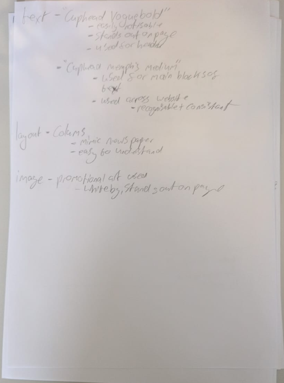 This website was made for a sixth form project. prompted by "a website focusing on music" i chose to make one on the game "Cuphead" that I was playing at the time. For the Design i chose to focus on newspaper designs from the early 30s (a time the game was heavily inspired by), using text faces from the time, and bringing the newspaper design of the time to the modern era with additional features only avalible on mondern devices.